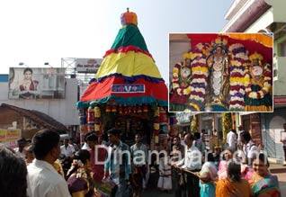 காரைக்கால்: காரைக்கால் நித்ய கல்யாண பெருமாள் கோவில் பிரமோற்சவ விழாவில் நேற்று தேரோட்டம் நடந்தது. காரைக்கால் நித்ய கல்யாண பெருமாள் கோவிலின் பிரமோற்சவ விழா கடந்த 4ம் தேதி கொடியேற்றத்துடன் துவங்கியது. பிரமோற்சவ நாட்களில் பெருமாளுக்கு சிறப்பு அபிஷேக ஆராதனைகள் நடந்து வருகிறது. தினந்தோறும் பெருமாள் கருட வாகனம், அனுமந்த் வாகனம், சிம்ம வாகனம் உள்ளிட்ட வாகனங்களில் சுவாமி வீதி உலா நடந்து வருகிறது. கடந்த 10ம் தேதி சிறப்பு திருமஞ்சனம் நடத்தப்பட்டு திருக்கல்யாணம் நடந்தது. அதைத்தொடர்ந்து வெண்ணைத்தாழி உற்சவமும் நடந்தது. நேற்று தேர் திருவிழா நடந்தது. தேரில் உலா வந்த நித்ய கல்யாண பெருமாளுக்கு சந்திர தீர்த்ததில் தீர்த்தவாரி நடந்தது. இதில் ஏராளமான பக்தர்கள் கலந்து கொண்டு சாமி தரிசனம் செய்தனர்.