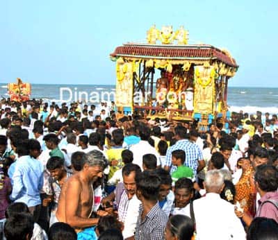 காரைக்கால்: காரைக்கால் திருப்பட்டினத்தில் நடந்த மாசிமக விழாவில் 8 பெருமாள்கள் தீர்த்தவாரியில் கலந்து கொண்டனர். காரைக்கால் திருப்பட்டினம் பட்டினச்சேரி கடற்கரையில் மாசிமக தீர்த்தவாரி நிகழ்ச்சி நடந்தது. கடற்கரையில் மாலை 4 மணிக்கு கோவில்பத்து கோதண்டராமர், நித்யகல்யாண பெருமாள், நிரவி கரியமாணிக்க பெருமாள், திருமருகல் வரதராஜபெருமாள், திருப்பட்டினம் விழிவரதராஜபெருமாள், திருப்பட்டினம் ரகுநாதபெருமாள், திருப்பட்டினம் பிரசன்னவெங்கடேச பெருமாள், திருகண்ணபுரம் சவுரிராஜபெருமாள் எழுந்தருளினர். கடற்கரையில் எழுந்தருளிய பெருமாள்களுக்கு தீர்த்தவாரி நடத்தப்பட்டு தீபாரதனை நடந்தது. அதைத்தொடர்ந்து ஏராளமான பக்தர்கள் சாமி தரிசனம் செய்தனர். தீர்த்தவாரி முடிந்து சாமி வீதி உலா நடந்தது.