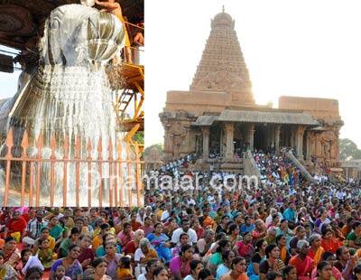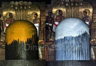 தஞ்சாவூர்: மகா சிவராத்திரியை முன்னிட்டு தஞ்சாவூர் பெரிய கோவிலில் மூலவர் பெருவுடையாருக்கு பல்வேறு அபிஷேகங்கள் நடந்தது. இதில், திரவியபொடி, மஞ்சள்பொடி, பால், தயிர்,சந்தனம் உள்ளிட்ட அபிஷேகங்கள் நடந்தது. பிரதோஷத்தை முன்னிட்டு தஞ்சாவூர் பெரிய கோவிலில் மகாநந்தியம் பெருமானுக்கும் குடம், குடமாக மஞ்சள் அபிஷேகம் நடந்தது. பெருவுடையார் மற்றும் மகா நந்திக்கு நடந்த பல்வேறு அபிஷேகங்களை நீண்ட வரிசையில் காத்திருந்து சென்று திரளான பக்தர்கள் தரிசனம் செய்தனர்.