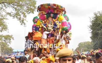 செஞ்சி: மேல்மலையனூர் அங்காளம்மன் கோவிலில் நடந்த மயானக்கொள்ளை நிகழ்ச்சியில் ஆயிரக்கணக்கானவர்கள் நேர்த்தி கடன் செலுத்தினர். விழுப்புரம் மாவட்டம் மேல்மலையனூர் அங்காளம்மன் கோவில் மாசி தேர் திருவிழா நேற்று மகா சிவராத்திரியன்று கொடியேற்றத்துடன் துவங்கியது. இரண்டாம் நாள் விழாவாக இன்று காலை மயானகொள்ளை நிகழ்ச்சி நடந்தது. மேல்மலையனூர் அங்காளம்மன் கோவில் ஸ்தல புராணத்தின் படி பிரம்மனின் தலையை சிவபெருமான் கொய்ததால் கோபமடையும் சரஸ்வதி தேவி, சிவபெருமானின் கரத்தில், பிரம்ம கபாலம் ஒட்டிக்கொள்ளும் படி சாபமிடுகிறார். சிவபெருமானுக்கு படைக்கும் உணவை பிரம்ம கபாலம் உண்டு விடுவதால், பசியால் வாடும் சிவபெருமான் பித்து பிடித்து அலைந்து, திரிந்து சிவராத்திரியன்று இரவு மேல்மலையனூர் மயானத்தில் வந்து தங்குகிறார். மறுநாள் இங்கு நடக்கும் மயான கொள்ளையில் பார்வதியின் அம்சமான அங்காளம்மன் சிவனுக்கு படைக்கும் உணவை எடுக்க வரும் பிரம்ம கபாலத்தை விஸ்வரூபம் எடுத்து தரையில் மிதித்து ஆட்கொள்கிறார். சிவபெருமான் சாபம் நீங்கி ஆனந்த தாண்டவம் ஆடுகிறார்.