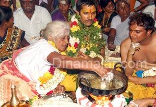 ஸ்ரீவில்லிபுத்தூர்: ஸ்ரீவில்லிபுத்தூர் முதலியார்பட்டி பத்திரகாளியம்மன் கோவிலில், சிவராத்திரியை ஒட்டி, 77 வயதான மூதாட்டி, கொதிக்கும் நெய் சட்டியில், கையால் அப்பம் சுட்டு, பக்தர்களை மெய்சிலிர்க்க வைத்தார். ஸ்ரீவில்லிபுத்தூர், முதலியார்பட்டி தெரு, பத்திரகாளியம்மன் கோவிலில், சிவராத்திரியை ஒட்டி, 47 ஆண்டுகளாக, கொதிக்கிற நெய் சட்டியில், கையால் அப்பம் சுட்டு, வழிபாடு நடந்து வருகிறது. நேற்று முன் தினம், பத்திரகாளியம்மனுக்கும் சிறப்பு அலங்காரம், சிறப்பு வழிபாடுகள் நடந்தன. விழாவில், நெய்யில் கையால் அப்பம் சுடும் நிகழ்ச்சி, நள்ளிரவு, 12:00 மணிக்கு நடந்தது. இதற்காக, ஸ்ரீவி., ஊரணிபட்டியைச் சேர்ந்த, 77 வயதான முத்தம்மாள், 90 நாட்கள் விரதமிருந்து, அம்மனுக்கு சார்த்தப்பட்ட புடவையை அணிந்தபடி, கோவில் வளாகத்தில் அடுப்பு மூட்டி, சட்டியில் நெய் ஊற்றி, அப்பம் தயாரிக்கும் பணியில் ஈடுபட்டார். முத்தம்மாளுக்கு, பக்தர்கள் மாவை பிசைந்து கொடுக்க, அவர், கொதிக்கிற நெய்யில், கரண்டி பயன்படுத்தாமல், கையாலேயே, அப்பத்தை புரட்டிப் போட்டு வேக வைத்தார். அப்பம் வெந்தவுடன், அவற்றை மீண்டும் கையாலே வெளியில் எடுத்தார். அவருக்கு உதவியாக கோவில் பூசாரிகள் இருந்தனர். தொடர்ந்து, 25 பெட்டி அப்பத்தை, தன் கையால், கொதிக்கிற நெய்யில் போட்டு எடுத்து, பக்தர்களை பரவசத்தில் ஆழ்த்தினார். இதை காண, ஏராளமானோர் வந்திருந்தனர். கையால் சுட்ட அப்பம், பத்திரகாளியம்மனுக்கு படையலிட்டு, பக்தர்களுக்கு வழங்கப்பட்டது.