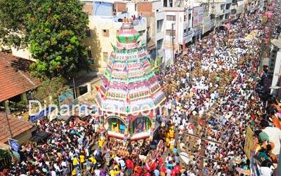 கோவை:கோவையில் காவல் தெய்வமாக விளங்கும், கோனியம்மனுக்கு பூச்சாட்டுடன் விழா துவங்கி, கொடியேற்றம், அக்னிச்சாட்டு, திருவிளக்குவழிபாடு ஆகியவை பக்தர்கள் புடைசூழ வெகுவிமரிசையாக நடந்தது. அன்றாடம் மாலை கோவிலில் இசைநிகழ்ச்சிகள், பட்டிமன்றம், சுழலும் சொல்லரங்கம், சொற்பொழிவு என்று கோவில் நிர்வாகம் சார்பில் ஏராளமான நிகழ்ச்சிகள் நடந்தது. நேற்று சுவாமிக்கு திருக்கல்யாண உற்சவம் இரவு நடந்தது. முக்கிய நிகழ்ச்சியான தேரோட்டம் இன்று நடந்தது. பல்லாயிரக்கணக்கான பக்தர்கள் புடைசூழ கோவை நகர வீதிகளில் தேர் வலம் வந்தது. சிறப்பு அலங்காரத்தில் அம்மன்