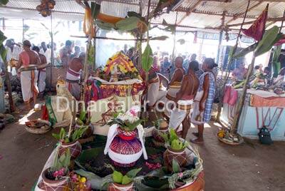 அதன் பின் பக்தர்களுக்கு அருள் பிரசாதம் வழங்கப்பட்டது. 12ம் தேதி புண்யாகவாஜனம், ஆராதனம் பூனை, பிம்மசுத்தி அதிவாச ஹோமம், உத்சவர், திருமஞ்சனம், சர்வசாந்தி ஹோமம், பூர்ணாணüதி தீப ஆராத னை நடந்தது. மாலையில் பல்வேறு பூஜைகளும் 13ம்தேதி புண்யாகவாஜனம், நித்திய ஹோமம், பூர்த்திஹோமம், பூர்ணாஹூதி யாத்ராதானம் மற்றும் நான்காம் கால பூஜை நடந்தது. காலை 8 மணிக்கு கடம் புறப்பாடும், 9.30 மணிக்கு விமானத்தில் புனி நீர் ஊற்றி கும்பாபிஷேகம் நடந்தது. காலை 10 மணிக்கு பெருமாள் அனுமார் சம்புரோஷனம், தீப ஆராதனை ஆசிர்வாதம் யஜமான்மரியாதை தஷிணா தானம் உள்ளிட்ட நிகழ்ச்சிகள் நடந்தது. இந்த விழாவில் சுற்றுப்பகுதியைச் சேர்ந்த ஆயிரகணக்கானோர் பங்கேற்றனர்.