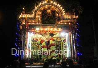 காஞ்சிபுரம் : காஞ்சிபுரம் ஏகாம்பரநாதர் கோவிலில், நேற்று முன்தினம் இரவு, மாவடி உற்சவம் வெகு விமர்சையாக நடைபெற்றது.காஞ்சிபுரம் ஏகாம்பரநாதர் கோவிலில், பங்குனி உத்திர திருக்கல்யாண பிரம்மோற்சவம், நடந்து வருகிறது. இதில், ஒன்பதாம் நாள் திருவிழாவான நேற்று முன்தினம் இரவு, மாவடி சேவை உற்சவம் நடந்தது. இதில் ஏலவார்குழலி சமேத ஏகாம்பரநாதர், இரவு 10:00 மணிக்கு, அலங்கரிக்கப்பட்ட வெள்ளி மாவடியில் எழுந்தருளி, பக்தர்களுக்கு அருள்பாலித்தார். பின், 10:30 மணிக்கு கோவிலில் இருந்து வெள்ளி மாவடி புறப்பட்டது. அலங்கரிக்கப்பட்ட வெள்ளி மாவடியில் ராஜவீதிகளில் உலா வந்த, ஏலவார்குழலி சமேத ஏகாம்பரநாதரை பக்தர்கள் தரிசனம் செய்தனர். நள்ளிரவு 12:00 மணிக்கு, வெள்ளி மாவடி, நிலைக்கு வந்து சேர்ந்தது.