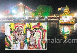 திருப்பாலைவனம்: திருப்பாலீஸ்வரர் கோவில் பங்குனி பெருவிழாவில், திருக்கல்யாணம் மற்றும் தெப்ப உற்சவம் நடந்தது.பொன்னேரி அடுத்த, திருப்பாலைவனம் கிராமத்தில் உள்ள, லோகாம்பிகை உடனுறை திருப்பாலீஸ்வரர் கோவிலில், பங்குனி பெருவிழா நடந்து வருகிறது. நேற்று முன்தினம், காலை தீர்த்தவாரியும், மாலை, பெருமானுக்கு திருக்கல்யாண வைபவமும் சிறப்பாக நடந்தது. இரவு, 8:00 மணிக்கு கொடியிறக்கம் செய்யப்பட்டு, பஞ்ச மூர்த்திகளுடன் பெருமான், கோவில் திருக்குளத்தில் உலா வந்து, பக்தர்களுக்கு அருள்பாலித்தார். இதற்காக பிரத்யோகமான மோட்டார் படகில் தெப்பம் தயார் செய்யப்பட்டிருந்தது. இரவு, 10:00 மணிக்கு, மாட வீதிகள் உலா பஞ்ச மூர்த்திகளின் திருவீதி உலாவும் நடந்தது. திருப்பாலை வனம், வஞ்சிவாக்கம், மெதூர், ஆவூர், வேம்பேடு உள்ளிட்ட, பல்வேறு கிராமங்களில் இருந்து பக்தர்கள் திரளாக பங்கேற்று, பெருமானை வணங்கி சென்றனர்.
