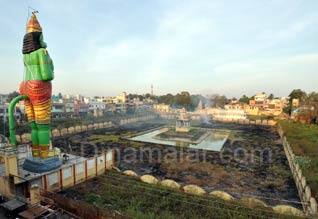 விழுப்புரம்: லட்ச தீப திருவிழாவையொட்டி விழுப்புரம் ஆஞ்சநேயர் கோவில் குளம் சுத்தம் செய்யும் பணிகள் நடந்து வருகிறது.விழுப்புரத்தில் ஆண்டு தோறும் லட்ச தீப திருவிழா வெகு விமர்சையாக கொண்டாடப்படுகிறது. விழுப்புரம் ஆஞ்சநேயர் கோவிலில் 10 நாட்கள் நடக்கும் இத்திருவிழா சித்திரை 1ம் தேதி (ஏப்., 14ம் தேதி) துவங்கி 10 நாட்கள் நடக்கிறது. சுற்று வட்டார பகுதியைச் சேர்ந்த பொது மக்கள், பெண்கள் பலர் பங்கேற்று அகல் தீபம் ஏற்றி வழிபடுவர். விழாவில் கோவில் குளத்தில் தெப்ப உற்சவம் நடத்தப்படும்.இதையொட்டி கோவில் குளத்தை சுத்தம் செய்யும் பணிகள் நடந்து வருகிறது. கோவில் குளத்தில் வளர்ந்துள்ள செடிகளை அகற்றி தீ வைத்து கொளுத்துப்பட்டு சுத்தப்படுத்தப்பட்டு வருகிறது.