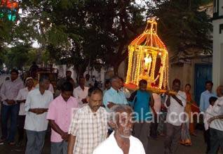 காரைக்கால்: காரைக்கால் தூய தேற்றரவு அன்னை ஆலயத்தில் மார்ச் 19ம் தேதி சூசையப்பர் தினமாக கொண்டாடப்படுகிறது. புதன்கிழமை மாலை தூய தேற்றரவு அன்னை ஆலயத்தில் சிறப்பு பிரார்த்தனை நடைபெற்றது. ஏராளமானோர் கலந்து கொண்டு வழிபாடு நடத்தினர். தொடர்ந்து மின் அலங்காரம் செய்யப்பட்ட தேரில் சூசையப்பர் வீதியுலா புறப்பாடு நடைபெற்றது.