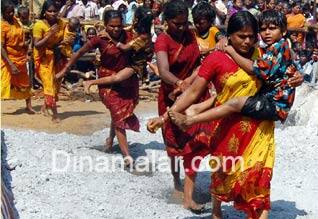 ஸ்ரீ,வி மாரியம்மன் கோயில் பூக்குழி திருவிழா: குழந்தைகளுடன் பெண்கள் வழிபாடு!