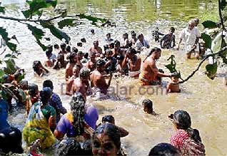 சிதம்பரம்; சிங்காரத்தோப்பு பிரம்ம தீர்த்தத்தில் நடராஜர் சுவாமி எழுந்தருளி தீர்த்தவாரி உற்சவம் நடந்தது.சிதம்பரம் நடராஜர் சுவாமிக்கு ஏற்ற தச தீர்த்தங்களில் ஒன்று பைபாஸ் ரோட்டில் உள்ள சிங்காரத்தோப்பு என்கிற திருக்களாஞ்சேரி பிரம்மபுரீஸ்வரர் கோவில் தீர்த்த குளம். இந்த குளத்தில் தேவர்கள் ஸ்நானம் செய்து பிரம்மபுரீஸ்வரரை வழிப்பட்ட சிறப்புமிக்க குளம். இந்த தீர்த்த குளத்தில் பங்குனி மாதம் வளர்பிறை பிரதமையன்று நடராஜர் சுவாமி (சந்திரசேகரர்) ரிஷப வாகனத்தில் எழுந்தருளினார். தீர்த்த குளம் கரையில் அஸ்தரராஜருக்கு சிறப்பு அபிஷேகம், தீபாராதனை நடந்தது. பின்னர் நடராஜர் சுவாமிக்கு பிரம்ம தீர்த்தவாரி நிகழ்ச்சி நடந்தது.இதனைதொடர்ந்து பிரம்மபுரீஸ்வரர் கோவிலில் சிறப்பு அபிஷேகம், அலங்காரம், தீபாராதனை நடந்தது. இதில் ஏராளமான பக்தர்கள் சுவாமி தரிசனம் செய்தனர். கோவிலில் பக்தர்களுக்கு அன்னதானம் வழங்கப்பட்டது. தீர்த்தவாரி உற்சவத்தை பொதுதீட்சிதர்கள் செய்தனர்.