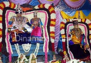 திருவள்ளூர்: திரிபுரசுந்தரி சமேத தீர்த்தீஸ்வரர் கோவிலில், நேற்று முன்தினம் இரவு திருக்கல்யாண உற்சவ நிகழ்ச்சி நடைபெற்றது. திருவள்ளூர் தீர்த்தீஸ்வரர் கோவிலில், பங்குனி பிரம்மோற்சவ விழா, கடந்த, 24ம் தேதி துவங்கியது. தினமும் காலை, இரவு இரு வேளைகளிலும் பல்வேறு வாகனங்களில் தீர்த்தீஸ்வரர் வீதிஉலா வந்தார். நேற்று முன்தினம் காலை பிச்சாடனர் உற்சவமும், மாலை திருக்கல்யாண உற்சவமும், அதன் பின், குதிரை வாகனத்தில் சுவாமி வீதிஉலாவும் நடந்தது. கோவில் வளாகத்தில் அமைக்கப்பட்ட அலங்கார மேடையில் திரிபுரசுந்தரி சமேத தீர்த்தீஸ்வரர் மலர் அலங்காரத்துடன் வீற்றிருக்க, ஏராளமான பக்தர்கள் திருமண காட்சியை தரிசித்தனர். நாளை, காலை மகா அபிஷேகத்துடன் பங்குனி பிரம்மோற்சவ விழா நிறைவடைகிறது.