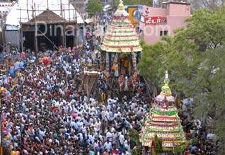 விருதுநகர்: விருதுநகர் பராசக்தி மாரியம்மன் கோயில் பங்குனி விழாவை யொட்டி, மாரியம்மன், வெயிலுகந்தம்மன் பவனி வரும் தேரோட்டம் நேற்று மாலை நடந்தது. இதில், ஏராளமான பக்தர்கள் கலந்து கொண்டு, தரிசனம் செய்தனர். மாரியம்மன் கோயில் பொங்கல் விழா,கடந்த மாதம் 30 ம் தேதி,கொடியேற்றத்துடன் துவங்கியது. விழாவின் எட்டாவது நாள் பொங்கல்,9 ம் நாள் அக்னி சட்டி எடுத்து நேர்த்திகடன் செலுத்துதல் நடந்தது. 10ம் நாளான நேற்று தேரோட்டம் நடந்தது. விநாயகர் தேர் முன்பாகவும், அதை தொடர்ந்து , மாரியம்மன், வெயிலுகந்தம்மன் எழுந்தருளிய தேர் வந்தது.தேரோட்டத்தை கோயில் நிர்வாகிகள் தொடங்கி வைத்தனர். தேரானது, தேசபந்து மைதானத்தில் தொடங்கி, மெயின் பஜார் வழியாக, தெற்கு ரத வீதியில் வந்து நின்றது. அங்கு பக்தர்கள், இரு அம்மன்களையும் தரிசித்தனர். பக்தர்களுக்கு, நீர், மோர் வழங்கப்பட்டது. விருதுநகர் மட்டுமன்றி, சுற்று பகுதி கிராமத்தை சேர்ந்த, ஏராளமான பக்தர்கள் கலந்து கொண்டு, அம்மன் அருள் பெற்றனர். தேரானது, இன்று காலை நிலைக்கு வந்து சேரும்.