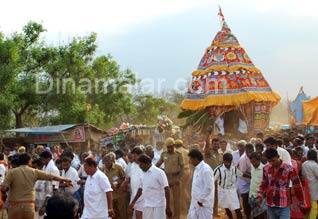 கச்சிராயபாளையம்: நல்லாத்தூர் கிராமத்தில் உள்ள புதுப்பட்டு மாரியம்மன் கோவிலில் நேற்று நடந்த தேர் திருவிழாவில் 10 ஆயிரத்திற்கும் மேற்பட்ட மக்கள் கலந்து கொண்டனர். கச்சிராயபாளையம் அடுத்த நல்லாத்தூர் கிராமத்தில் புதுப்பட்டு மாரியம்மன் திரு விழாவில் 10 ஆயிரத்திற்கும் மேற்பட்ட மக்கள் கலந்து கொண்டனர். நேற்று மாலை 4 மணிக்கு அமைச்சர் மோகன், எம்.எல்.ஏ., அழகுவேல்பாபு, சேர்மன் ராஜேந்திரன், சிறப்பு அலுவலர் தமிழரசி, ஊராட்சி தலைவர் குமுதம்சேகர் தேரினை வடம் பிடித்து துவக்கி வைத்தனர். டி.எஸ்.பி, மதிவாணன் மேற்பார்வையில், கச்சிராயபாளையம் இன்ஸ்பெக்டர் ராஜக்கண்ணன் தலைமையில் , 5 இன்ஸ்பெக்டர்கள், 6 சப்இன்ஸ்பெக்டர்கள் உட்பட 80 க்கும் மேற்பட்ட போலீசார் பாதுகாப்பு பணியில் ஈடுபட்டனர்.
