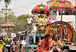கரூர்: கரூர் கல்யாண பசுபதீஸ்வரர் கோயில் பங்குனி விழா நடந்தது. கரூரில் கல்யாண பசுபதீஸ்வரர் கோவில் உள்ளது. இக்கோயிலில் பங்குனி உத்திர திருவிழாவையொட்டி தீர்த்தவாரி நிகழ்ச்சி நடந்தது. இவ்விழாவில் ஸ்வாமிகள் ஊர்வலமாக புறபட்டனர். முக்கிய வீதிகளில் வந்த ஸ்வாமியை திரளான பக்தர்கள் திரண்டு வந்து தரிசித்தனர்.
