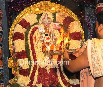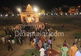 சென்னை: பங்குனி உத்திரத்தை முன்னிட்டு, சென்னை வடபழனி ஆண்டவர் கோவிலில், தெப்ப திருவிழா நடந்து வருகிறது. இந்நிகழ்ச்சிக்காக, தண்ணீர் இன்றி வறண்டு போன குளத்தில் அமைந்துள்ள நடுமண்டபத்தில், மின் விளக்குகளால் அலங்கரிக்கப்பட்டு, தெப்ப உற்சவம் நடத்தப்பட்டது. இதில், ஏராளமான பக்தர்கள் குளத்தில் இறங்கி, தெப்பம் சுற்றுவது போல், தெப்பமாக அலங்கரிக்கப்பட்ட நடுமண்டபத்தை சுற்றி வந்து, சாமி தரிசனம் செய்தனர். சிறப்பு அலங்காரத்தில் முருகப்பெருமான் பக்தர்களுக்கு அருள்பாலித்தார்.