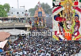 இந்தாண்டுக்கான சித்திரை திருவிழா ஏப்ரல் ஆறாம் தேதி கொடியேற்றத்துடன் துவங்கியது. இதைத்தொடர்ந்து விழா நாட்களில் அம்பாள் சிம்மம், பூதம், அன்னம், ரிஷபம், யானை, குதிரை உட்பட்ட வாகனங்களில் எழுந்தருளி பக்தர்களுக்கு அருள்பாலித்தார். திருவிழாவின் முக்கிய நாளான நேற்று காலை ஒன்பது மணியளவில் திருத்தேரில் அம்பாள் எழுந்தருளினார். பின்னர் காலை, 10.30 மணியளவில் பக்தர்கள் திருத்தேரை வடம் பிடிக்க தேரோட்டம் நடந்தது. ஆயிரக்கணக்கான பக்தர்கள் மத்தியில் ஆடி அசைந்து நான்கு ரத வீதிகளை சுற்றி வந்து மதியம், 2.45 மணியளவில் தேர் நிலையை அடைந்தது.