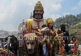 குன்னூர் : குன்னூர் தந்தி மாரியம்மன் கோவிலில் நேற்று முத்துப்பல்லக்கு உற்சவம் வெகு விமரிசையாக கொண்டாடப்பட்டது.குன்னூர் தந்திமாரியம்மன் கோவிலில் நடந்து வரும் சித்திரை தேர்த்திருவிழாவில், நேற்று கேரள சேவா சங்கம் சார்பில், 69வது ஆண்டு முத்துப்பல்லக்கு உற்சவம் வெகு விமரிசையாக கொண்டாடப்பட்டது.காலை 6:00 மணிக்கு துயில் உணர்த்தும் குண்டு வெடித்தல் நிகழ்ச்சி நடந்தது. காலை 10:00 மணிக்கு குன்னூர் துருவம்மன் கோவிலில் இருந்து கும்ப கலசம், பஞ்சவாத்தியம், பூக்காவடி, அம்பலவயல் காவடி, சிங்காரிமேளம், தேவி ரக்ஷõ மற்றும் முத்துரத காளைகளுடன் ஊர்வலமாக தந்திமாரியம்மன் கோவிலை அடைந்தது.அங்கு 108 குடம் பசும்பால், 108 இளநீர் மற்றும் பல்வேறு அபிஷேக பொருட்களுடன் அபிஷேகம் அலங்காரம் நடந்தது.மதியம் 12:30 மணிக்கு அபிஷேக பிரசாத விநியோகம், விநாயகர்கோவிலில் அன்னதானம் நடந்தது. தொடர்ந்து ஐயப்பன் கோவிலில் இருந்து அம்மன் முத்துப்பல்லக்கில் ஊர்வலம் நடந்தது.விழாவில், புராணங்களில் கூறப்படும் சம்பவங்களான கம்சனை வதம் செய்யும் நிகழ்ச்சி, யானை மற்றும் தேவி ரக்ஷõவின் மகிஷாசுரவதம், ராமர், லட்சுமணர் மற்றும் கிங்காங் ஆகிய பிரம்மாண்ட புதுமை நிகழ்ச்சி பார்வையாளர்களை வெகுவாக கவர்ந்தது. விழாவில் நீலகிரி மாவட்டத்தின் பல்வேறு பகுதிகளில் இருந்தும் ஆயிரக்கணக்கான பக்தர்கள் பங்கேற்று வழிபட்டனர்.