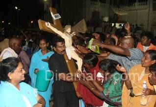 நாகப்பட்டினம்: வேளாங்கண்ணி தேவாலயத்தில், புனித வெள்ளி வழிபாட்டில், பல்லாயிரம் பக்தர்கள் கலந்து கொண்டனர். வேளாங்கண்ணி, ஆரோக்கியமாதா தேவாலயத்தில், இயேசு கிறிஸ்து சிலுவையில் அறையப்பட்ட தினமான, நேற்று, சிறப்பு திவ்ய நற்கருணை ஆராதனை நிகழ்ச்சிகள் நடந்தன. நேற்று அதிகாலை, 5:00 மணி முதல் மாலை 5:00 மணி வரை, அடைக்கல அன்னை அருட் சகோதரிகள், இருதயம் மரியாயின் சேனை, அன்னை தெரசா சபை, ஆங்கில திருப்பயணிகள், நிர்மல் இல்லத்தினர், டி.எம்.ஐ., சகோதரிகள் மற்றும் பல்வேறு அமைப்பினர், தொடர்ந்து ஆராதனை நடத்தினர். தேவாலய கலையரங்கில், மாலை 6:30 மணிக்கு, பேராலய அதிபர் மைக்கேல் உள்ளிட்ட, 10 பாதிரியார்கள் தலைமையில், இறை வழிபாடு, பொது மன்றாட்டு, சிலுவை ஆராதனை ஆகியவை நடந்தன. புனித வெள்ளியைத் தொடர்ந்து, இன்று புனித சனி துக்க நாள் கடைபிடிக்கப்படுகிறது. இதனால், பேராலய கோவில்களில் திருப்பலியோ, சடங்குகளோ நடைபெறாது. இரவு 10:45 மணிக்கு, பாஸ்கா திருவிழிப்பு சடங்கு நடக்கிறது. ஞாயிறன்று, இயேசு கிறிஸ்து உயிர்த்தெழுந்த தினம், ஈஸ்டர் பண்டிகையாக கொண்டாடப்படுகிறது. அன்று, காலை 6:30 மணி முதல் மாலை 6:00 மணி வரை, தமிழ், மலையாளம், கொங்கணி, தெலுங்கு, இந்தி, ஆங்கிலம் ஆகிய மொழிகளில், திருப்பலிகள் நடைபெறும். மாலை 6:45 மணிக்கு, உயிர்த்த இயேசு கிறிஸ்து தேர்பவனி நடக்கிறது.