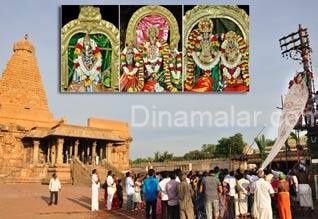 தஞ்சாவூர்: தஞ்சை பெரிய கோவிலில் சித்திரை பெருவிழா கொடியேற்றத்துடன் கோலாகலமாக துவங்கியது. தஞ்சை பெரிய கோவிலில் காலை திருக்கொடியேற்றப்பட்டு விழா துவங்கியது. கோவில் முன் உள்ள பெரிய கொடிமரத்தில் சிவச்சாரியார்கள் கொடியேற்றினர். கொடியேற்றத்தின் போது பெரியநாயகி சமேத பெருவுடையார் அலங்காரத்தில் காட்சியளித்தார். தொடர்ந்து சந்திரசேகரர் பஞ்ச மூர்த்திகளுடன் கோவிலுக்குள் புறப்பாடாகி உலா வந்தனர். விநாயகர், வள்ளி, தெய்வானை சமேத சுப்ரமணியர், பெரியநாயகி சமேத பெருவுடையார் சிறப்பு அலங்காரத்தில் எழுந்திருளி பக்தர்களுக்கு காட்சியளித்தனர். ஏராளமான பக்தர்கள் தரிசனம் செய்தனர். விழாவை முன்னிட்டு தினமும் காலை பல்லக்கில் சுவாமி உலா நடைபெறுகிறது.