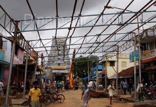காரைக்கால்: திருநள்ளார் சனிஸ்வர பகவான் கோவிலில் பக்தர்களின் வசதிக்காக கிரேன் மூலம் தகரத்தால் ஆன ஷெட் அமைக்கும் பணி நடந்து வருகிறது. காரைக்கால் திருநள்ளார் தர்பாரண்யேஸ்வரர் கோவிலில் சனிஸ்வர பகவான் தனி சன்னதியில் அருள்பாலித்து வருகிறார். நவகிரக ஸ்தலங்களில் சனி பரிகார ஸ்தலமாக திருநள்ளார் விளங்குகிறது. இங்குள்ள, நளன் குளத்தில் நீராடி எள் தீபம் ஏற்றி சனிஸ்வர பகவானை வழிப்பட்டால் சனிதோஷம் குறையும் என நம்பிக்கை. இதனால், நாட்டின் பல்வேறு பகுதியில் இருந்தும் ஏராளமான பக்தர்கள் திருநள்ளாருக்கு வருகின்றனர். தற்போது, பள்ளி மாணவர்களுக்கு கோடை விடுமுறை என்பதால். கோடை விடுமுறை காலத்தில் திருநள்ளாரில் ஆயிரக்கணக்கான பக்தர்கள் குவிந்துவிடுவர். தற்போது, கோடை வெயில் மற்றும் கனமழையால். பக்தர்களின் வசதிக்காக கோவில் நிர்வாகம் சார்பில் கோவிலின் ராஜகோபுரத்தில் இருந்து பிரதான சாலை வரை கிரேன் மூலம் இரும்பு தகரத்தால் ஆன ஷெட் அமைக்கும் பணி நடந்து வருகிறது.
