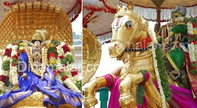 ஸ்ரீவில்லிபுத்தூர் : சித்ரா பவுர்ணமியை முன்னிட்டு, ஸ்ரீவில்லிபுத்தூர் ஆண்டாள் கோயிலில், வையாளி சேவை நடந்தது. ஸ்ரீவில்லிபுத்தூர் ஆண்டாள் கோயிலில், சித்ரா பவுர்ணமியை முன்னிட்டு, மாண்டுக முனிவருக்கு சாப விமோசனம் கொடுப்பதற்காக, ரெங்கமன்னார், ஆண்டாள் வையாளி சேவை நடப்பது வழக்கம். அதன்படி வையாளி சேவை நேற்று நடந்தது. இதில் ஆண்டாள், நீல பட்டுடுத்தி சேஷ வாகனத்திலும்,ரெங்க மன்னார், பச்சை பட்டுத்தி குதிரை வானத்திலும் மாடவீதி, கந்தாடை வீதி, ரதவீதிகள் வழியாக, வீதி உலா வர, ஆத்துக்கடை தெருவில் வையாளி சேவை நடந்தது. அறங்காவலர் குழு தலைவர் ரவிச்சந்திரன், செயல் அலுவலர் ராமராஜா, ஸ்தானிகம் ரமேஷ், சுதர்சனன் உட்பட பலர் கலந்து கொண்டனர்.
