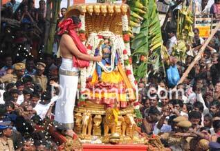 மதுரை: மதுரை சித்திரை திருவிழாவின் 6ம் நாளான நேற்று, தேனூர் மண்டபத்தில் எழுந்தருளிய சுந்தரராஜப் பெருமாள் சுவாமி, மண்டூக முனிவருக்கு சாபம் தீர்த்து காட்சி தந்தருளினார். மதுரை அழகர்கோவில் கள்ளழகர் கோயில் சித்திரை திருவிழாவின் முத்தாய்ப்பாக நேற்று முன்தினம் காலை 6.11 மணிக்கு, கள்ளர் திருக்கோலத்தில் அழகர் வைகை ஆற்றில் எழுந்தருளினார். விழாவின் 6ம் நாளான நேற்று காலை 6 மணிக்கு வண்டியூர் வரதராஜப் பெருமாள் கோயிலில் ஏகாந்த சேவை நடந்தது. பின், அங்கிருந்து சேஷ வாகனத்தில் தேனூர் மண்டபத்திற்கு சுந்தரராஜப் பெருமாள் சுவாமி காலை 11 மணிக்கு எழுந்தருளினார். மதியம் 3 மணிக்கு மண்டூக முனிவருக்கு சாபம் தீர்த்து காட்சி தந்தருளினார். மாலை 4 மணிக்கு அனுமார் கோயிலில் அங்கப் பிரதட்சணம், இரவு 12 மணி முதல் ராமராயர் மண்டபத்தில் தசாவதாரத் திருக்கோலம் நடந்தது. இங்கு இன்று (மே 16) காலை 6 மணிக்கு மோகினி அவதாரத்துடன் பக்தி உலாவுதல், பகல் 12 மணிக்கு அனந்தராயர் பல்லக்கில் ராஜாங்கத் திருக்கோலத்துடன் எழுந்தருளல், சேதுபதி மண்டபத்தில் இரவு 11 மணிக்கு திருமஞ்சனம் நடக்கிறது.