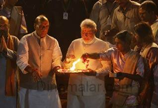 வாரணாசி: வாரணாசி தொகுதியில் மாபெரும் வெற்றியை பெற்றுத்தந்த காசி மக்களுக்கு நன்றி கூறச்சென்றவர் காசி விசுவநாதர் கோயிலில் தரிசனம் செய்துவிட்டு நெற்றி நிறைய பூசப்பட்ட சந்தனம் மற்றும் மத்தியில் வைக்கப்பட்ட குங்குமத்துடன் கங்கை ஆரத்தி நிகழ்ச்சியில் கலந்து கொண்டார்.