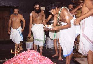 சபரிமலை: வைகாசி மாத பூஜை முடிந்து சபரிமலை நடை நேற்று இரவு அடைக்கப்பட்டது. பிரதிஷ்டை தின பூஜைக்காக ஜூன் ஏழாம் தேதி மாலையில் மீண்டும் நடை திறக்கிறது. வைகாசி மாத பூஜைக்காக கடந்த 14ம் தேதி மாலையில் நடை திறந்தது. மேல்சாந்தி நாராயணன் நம்பூதிரி நடை திறந்து தீபம் ஏற்றினார். அதை தொடர்ந்து வேறு விசேஷ பூஜைகள் எதுவும் நடைபெறவில்லை. 15ம் தேதி முதல் நேற்று வரை ஐந்து நாட்கள் தொடர்ந்து வழக்கமான பூஜைகளுடன், உதயாஸ்மனபூஜை, படிபூஜை போன்றவையும், நெய்யபிஷேகமும் நடைபெற்றது. நேற்று மதியம் உச்சபூஜைக்கு முன்னோடியாக சகஸ்ரகலச பூஜை நடைபெற்றது. கலசங்களுக்கு தந்திரி கண்டரரு மகேஷ் மோகனரரு பூஜைநடத்திய பின்னர் பிரம்மகலசத்தில் களபம் நிறைக்கப்பட்டு மேல்சாந்தி நாராயணன் நம்பூதிரி அதை எடுத்து கோயிலை வலம் வந்தார். தொடர்ந்து ஐயப்பனுக்கு கலசாபிஷேகம் நடத்தப்பட்டது. இரவு படிபூஜையும், ஒன்பது மணிக்கு அத்தாழபூஜையும் முடிந்து இரவு பத்து மணிக்கு நடை அடைக்கபபட்டது. அடுத்து பிரதிஷ்டை தினபூஜைக்காக வரும் ஏழாம் தேதி மாலை நடை திறக்கிறது. எட்டாம் தேதி பிரதிஷ்டைதின சிறப்பு பூஜைக்கு பின்னர் அன்று இரவு நடை அடைக்கப்படும். அதன் பின்னர் ஆனி மாத பூஜைக்காக ஜூன் 14ம் தேதி மாலை நடை திறக்கிறது.