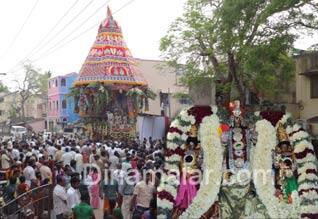திண்டிவனம்: திண்டிவனம் லக்ஷ்மி நரசிம்மர் கோவிலில் பிரம்மோற்சவ விழா கடந்த 12 ம் தேதி காலை கொடியேற்றத்துடன் துவங்கியது. விழா நாட்களில் பெருமாள் சிறப்பு அலங்காரத்தில் வாகனங்களில் வீதியுலா வந்து அருள் பாலித்தார். 14ம் தேதி காலை மற்றும் 16 ம் தேதி மாலையும் கருடசேவை உற்சவம் நடந்தது. நேற்று முன்தினம் (19 ம் தேதி) மாலை திருக்கல்யாணம் நடந்தது. திருமண கோலத்தில் பெருமாள் குதிரை வாகனத்தில் வீதியுலா வந்து அருள்பாலித்தார். நேற்று காலை 8.15 மணிக்கு, தேரோட்டத்தை முன்னாள் அமைச்சர் சண்முகம் துவக்கி வைத்தார். ராதாகிருஷ்ணன், நகரமன்ற சேர்மன் வெங்கடேசன், பி.ஆர்.எஸ்.ரங்கமன்னார், ராம் டெக்ஸ் தியாகராஜன், வெங்கடேசன்,முன்னாள் கவுன்சிலர் சக்தி வேல்,நியூ பால்பாண்டியன் சுரேஷ், ராஜன் டிரைவிங் ஸ்கூல் கோவிந்தராஜீ, ஆர்.டி.ஓ., ஜெயச்சந்திரன், முன்னாள் ஊராட்சி மன்ற தலைவர் ரவிச்சந்திரன் , ராம்லால் ரமேஷ், டாக்டர் சண்முக சுந்தரம், அறநிலைய துறை செயல் அலுவலர் மகாரா ஜன், ஆய்வாளர் சுரேஷ், சங்கர் பங்கேற்றனர். பூஜைகளை சீனுவாசன், ரகு, ஸ்ரீதர் பட்டாச்சாரியர்கள் குழுவினர் செய்தனர். நண்பகல் 12.45 மணிக்கு தேர்நி லையை அடைந்தது.