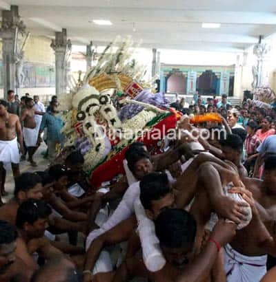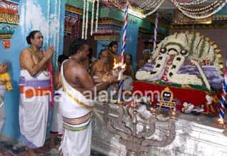 காரைக்கால்: திருநள்ளார் சனிஸ்வர பகவான் கோவில் பிரமோற்ச விழாவில் செண்பக தியாராஜர் உன்மத்த நடனத்துடன் வசந்த மண்டபத்தில் எழுந்தருளி அருள்பாலித்தார். காரைக்கால் திருநள்ளாரில் பிரசித்தி பெற்ற தர்பாரண்யேஸ்வர கோவிலில் சனிஸ்வர பகவான் தனி சன்னதியில் அருள்பாலிக்கிறார். இக்கோவிலின் பிரமோற்சவ விழா கடந்த 25ம் தேதி கொடியேற்றதுடன் துவங்கியது. கடந்த 26ம் தேதி முதல் 27ம் தேதி வரை விநாயகர் உற்சவமும், 28 மற்றும் 30ம் தேதி சுப்ரமணியர் உற்சவமும், கடந்த 1ம் தேதி இரவு அடியார் நால்வர் உற்சவம் நடந்தது. அதைத்தொடர்ந்து, நேற்று இரவு செண்பக தியாராஜர் வசந்த மண்டபத்தில் எழுந்தருளினார். இன்று காலை 11 மணிக்கு அலங்கரிக்கப்பட்ட செண்பக தியாராஜ சுவாமிகள் உன்மத்த நடனத்துடன் வசந்த மண்டபத்திலிருந்து யதாஸ்தானத்திற்கு எழுந்தருளும் நிகழ்ச்சி நடந்தது. இதில், அப்போது பக்தர்கள் பக்தி பரவசத்துடன் தியாகராஜர் சுவாமியை வழிப்பட்டனர். 6ம் தேதி தங்க ரிஷப வாகனத்தில் பஞ்சமூர்த்திகள் வீதி உலா நடக்கிறது. 8ம் தேதி காலை 7 மணிக்கு செண்பக தியாகராஜர் தேரில் எழுந்தருள தேர் திருவிழா, 9ம் தேதி சனீஸ்வர பகவான் தங்க காக வாகனத்தில் சகோபுர வீதியுலா,10ம் தேதி இரவு தெப்போற்சவம், 11ம் தேதி விசாக தீர்த்தம் நடைபெறுகிறது. விழாவிற்கான ஏற்பாடுகளை கோவில் நிர்வாகத்தினம் செய்து வருகின்றனர்.