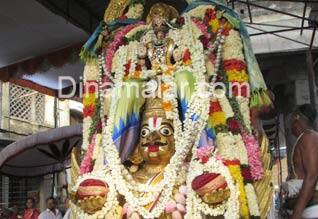 செங்கல்பட்டு : சிங்கப்பெருமாள் கோவிலில், பாடலாத்ரி நரசிம்மபெருமாள் கோவிலில், கருடசேவை நேற்று கோலாகலமாக நடந்தது. சிங்கப்பெருமாள் கோவிலில், புகழ்பெற்ற பாடலாத்ரி நரசிம்மபெருமாள் கோவில் அமைந்துள்ளது. இக்கோவில், இந்து அறநிலையத் துறை கட்டுப்பாட்டில் உள்ளது. இங்கு, ஆண்டுதோறும் பிரம்மோற்சவம் நடைபெறுகிறது. இந்த ஆண்டு இவ்விழா கடந்த 2ம் தேதி, கொடியேற்றத்துடன் துவங்கியது. இதில், மூன்றாம் நாளான நேற்று காலை, கருடசேவை உற்சவம் கோலாகலமாக நடந்தது. இதை முன்னிட்டு அதிகாலை 5:00 மணிக்கு, சுவாமிக்கு சிறப்பு அபிஷேகம் மற்றும் அலங்காரத்துடன் வழிபாடு நடந்தது. அதைத் தொடர்ந்து காலை 5:30 மணிக்கு, கருட வாகனத்தில், பாடலாத்ரி நரசிம்ம பெருமாள் சுவாமி எழுந்தருளி கோபுர தரிசனம், மகா ஆரத்தி நடந்தது.பின்னர், வீதியுலா புறப்பட்டு மாடவீதிகள் வழியாக சென்றார். சிங்கப்பெருமாள்கோவில் மற்றும் அதைச்சுற்றியுள்ள கிராமங்களை சேர்ந்த பக்தர்கள் ஏராளமானோர், சுவாமியை தரிசனம் செய்தனர்.