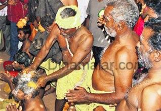 பக்தர்கள் தலையில் தேங்காய் உடைத்து நேர்த்திக்கடன்!