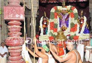 காரைக்குடி : தென் திருப்பதிகளில் ஒன்றான,அரியக்குடி அலர்மேல் மங்கை உடனுறை திருவேங்கமுடையான் கோயில்,கொடியேற்றத்தை முன்னிட்டு,காலை 6.30 மணிக்கு சுவாமிக்கு திருமஞ்சனம் நடந்தது. அதை தொடர்ந்து, சுவாமி சிறப்பு அலங்காரத்தில், சீதேவி, பூதேவியுடன், கொடிமரம் அருகில் எழுந்தளினார். காலை 10 மணிக்கு கொடியேற்றம் நடந்தது. இரவு 9 மணிக்கு, அம்ச வாகனத்தில் சுவாமி வீதி உலா நடந்தது. விழா நாட்களில், இரவு சுவாமி வீதி உலா, வரும் 13-ம் தேதி, தேரோட்டம், 16-ம் தேதி தெப்பதேர் விழா நடக்கிறது.ஏற்பாடுகளை, நிர்வாக அதிகாரி மகேந்திரன், அறங்காவலர் தலைவர் அழகம்மை ஆச்சி செய்திருந்தனர்.