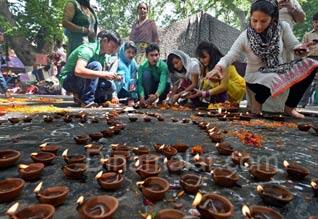 ஜம்மு-காஷ்மீரின் ஜம்மு நகரில் உள்ள கீர் பவானி கோயிலில் துர்கா பூஜை நடந்தது. இதில் பெண்கள் விளக்கேற்றி, அம்மனுக்கு நேர்த்திகடன் செலுத்தினர்.