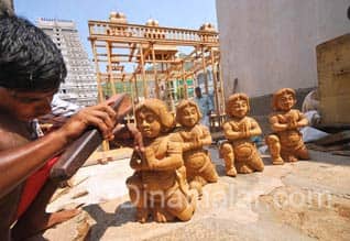 திருவண்ணாமலை: திருவண்ணாமலை அண்ணாமலையார் கோவிலில் கொண்டாடப்படும் கார்த்திகை தீப திருவிழா உலக பிரசித்தி பெற்றதாகும், இந்த விழா ஆண்டுதோறும் கொண்டாடப்பட்டு வருகிறது, இதில், முக்கிய விழாவான, 2,668 அடி உயரமுள்ள மலை உச்சியில் மஹா தீபம் ஏற்றப்படும். இந்த விழா முடிந்து தொடர்ந்து மூன்று நாட்கள் அய்யங்குளத்தில், அண்ணாமலையார் சமேத உண்ணாமுலையம்மன், சுப்பிரமணியர், பராசக்தி அம்மன், என இந்த ஸ்வாமிகளின் தெப்ப உற்சவம் மூன்று நாட்கள் நடைபெறும். இதனை காண, பல்வேறு பகுதிகளில் இருந்து பல ஆயிரக்கணக்கான பக்தர்கள் வருகை தருவர். இந்த தெப்பல் உற்சவத்தின்போது ஸ்வாமி, மற்றும் அம்மனை தெப்பலில் வைத்து அலங்கரித்து, குளத்தை மூன்று முறை சுற்றி வர செய்வர். இதற்காக பயன்படுத்தப்படும், ஏற்கனவே செய்யப்பட்ட, தெப்பம் கடந்த, 25 ஆண்டுகளுக்கு முன், செய்யப்பட்டது. இவை தற்போது பயன்படுத்துவதற்கு உகந்ததாக இல்லை. இதனால், புதிய தெப்பம் செய்வதற்கான டெண்டர் விடப்பட்டது. இதில், சிவகங்கை மாவட்டம் மாலைக்கண்டான் பகுதியை சேர்ந்த செல்வம் ஸ்பதியை தேர்வு செய்து, 35 லட்சத்து, 30 ஆயிரத்து, 790 ரூபாய்க்கு டெண்டர் விடப்பட்டது. இந்நிலையில், இந்த தெப்பல் முழுவதும், தேக்கு மரத்தால் செய்யும் பணி நடைபெற்று வருகின்றன. இதில், தற்போது தெப்பலில் பயன்படுத்தப்பட உள்ள பொம்மை மற்றும் சப்பரங்கள் செய்யும் பணி நடந்து வருகிறது. இவை, இன்னும் ஓரிரு மாதங்களில் பணி முடிவடையும் நிலையில் உள்ளன. வரும் கார்த்திகை தீப திருவிழாவின்போது, இந்த புதிய தெப்ப உற்சவம் நடைபெறுவதற்கான, ஏற்பாடுகள் தீவிரமாக நடந்து வருகிறது.