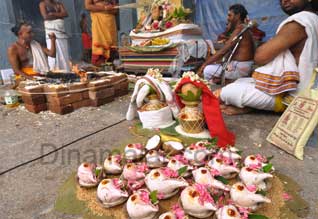 புதுச்சேரி: காளத்தீஸ்வரர் கோவில் கும்பாபிஷேக 11ம் ஆண்டு விழாவை முன்னிட்டு, 108 சங்காபிஷேகம் நடந்தது. புதுச்சேரி மிஷன் வீதியில் செட்டிக் கோவில் என்றழைக்கப்படும் காளத்தீஸ்வரர், வரதராஜப் பெருமாள் தேவஸ்தானத்தின், கும்பாபிஷேக 11ம் ஆண்டு விழா நேற்று முன்தினம் துவங்கியது.இதையொட்டி, மாலை 6.00 மணிக்கு அக்னி பிரதிஷ்டை, மகா சாந்தி ஹோமம் நடந்தது.நேற்று காலை 7.30 மணி யாகபூஜை, மகா தீபாராதனை நடந்தது. காலை 10.30 மணிக்கு கலசம் புறப்பாடு, ஞானாம்பிகா சமேத காளத்தீஸ்வர சுவாமிக்கு 108 சங்காபிஷேகம் நடந்தது.இதில் திரளான பக்தர்கள் கலந்து கொண்டு தரிசனம் செய்தனர். விழா ஏற்பாடுகளை அறங்காவலர் குழுவினர் செய்திருந்தனர்.