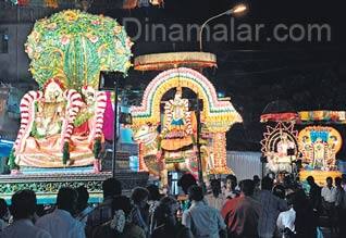 புதுச்சேரி: காளத்தீஸ்வரர் வரதராஜப் பெருமாள் கோவிலில் 11ம் ஆண்டு கும்பாபிஷேக விழாவையொட்டி, பஞ்சமூர்த்திகள் வீதி உலா நடந்தது. மிஷன் வீதியில் உள்ள காளத்தீஸ்வரர் வரதராஜப் பெருமாள் கோவிலில் கும்பாபிஷேக 11ம் ஆண்டு விழாவையொட்டி, ஞானாம்பிகை சமேத காளத்தீஸ்வர சுவாமிக்கு நேற்று காலை 10:30 மணிக்கு 108 சங்கு அபிஷேகம் நடந்தது. ஸ்ரீதேவி பூதேவி சமேத வரதராஜப் பெருமாளுக்கு சங்கல்பம், புண்யாஹம், ஹோமம், மகா சாந்தி, திருமஞ்சனம், மகா சாந்தி கட திருமஞ்சனம் நடந்தது. இரவு அலங்கரிக்கப்பட்ட வாகனத்தில் பஞ்சமூர்த்திகள், ஸ்ரீதேவி பூதேவி சமேதராக வரதராஜப் பெருமாள் வீதி உலா நடந்தது. விழா ஏற்பாடுகளை, கோவில் அறங்காவலர் குழுவினர் செய்திருந்தனர்.
