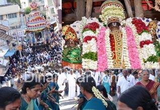 திருப்பூர் : கோவிந்தா கோஷம் முழங்க, திருப்பூரில் ஸ்ரீவீரராகவப் பெருமாள் கோவில் தேரோட்டம் நேற்று நடந்தது. திருப்பூர் விஸ்வேஸ்வரர், ஸ்ரீவீரராகவப் பெருமாள் கோவில், வைகாசி விசாகத் தேர்த்திருவிழா, கடந்த 5ம் தேதி, கொடியேற்றத்துடன் துவங்கியது. தொடர்ந்து, தினமும் சுவாமி வீதி உலா, சிறப்பு பூஜைகள் நடந்தன. கடந்த 10ம் தேதி, திருக்கல்யாண உற்சவம் நடந்தது. நேற்று முன்தினம் காலை, பூமிநீளாதேவி தாயார், கனகவல்லி தாயார் சமேதரராக ஸ்ரீவீரராகவப் பெருமாள் திருத்தேருக்கு எழுந்தருளினார். நேற்று மாலை 4.10 மணிக்கு, திருத்தேர் வடம் பிடித்து துவக்கி வைக்கும் நிகழ்ச்சி நடந்தது. மேயர் விசாலாட்சி, துணை மேயர் குணசேகரன் உள்ளிட்டோர் துவக்கி வைத்தனர். தொடர்ந்து, கோவிந்தா கோஷம் முழங்க, திருத்தேர் பக்தர்களால் வடம் பிடித்து இழுக்கப்பட்டது. நிலையிலிருந்த புறப்பட்ட, வீரராகவப் பெருமாள் கோவில் தேர், ஈஸ்வரன் கோவில் வீதி, அரிசிக்கடை வீதி வழியாக வந்தது. காமராஜர் ரோடு, பூ மார்க்கெட் வீதி வழியாக வலம் வந்து, இரவு 7.00 மணிக்கு, நிலையை அடைந்தது. சிறப்பு அலங்காரத்தில், எம்பெருமாளும், தாயார்கள் பக்தர்களுக்கு அருள்பாலித்தனர். மாலை 5.00 மணிக்கு, வழக்கமாக, மூலவருக்கு சாய ரட்ஷை பூஜை நடக்கும்; நேற்று, தேரில் எம்பெருமான் எழுந்தருளியதால், 5.30 மணிக்கு, பெருமாள் கோவில் அருகே தேர் வந்ததும், தேரிலேயே சாய ரட்ஷை பூஜை நடந்தது. தேருக்கு முன், சேக்கிழார் புனித பேரவை சார்பில், பெண்கள் கும்மியாட்டம், கோலாட்டம் ஆடி வந்தனர். பக்தர்கள், பெருமாள் பாசுரங்கள் பாடினர். இன்று, மாலை 6.00 மணிக்கு பரிவேட்டை உற்சவம் நடக்கிறது. நாளை மாலை 7.00 மணிக்கு, தெப்பத்திருவிழா, 15ம் தேதி, காலை 10.00 மணிக்கு, சிறப்பு அபிஷேகம், மகா தரிசனம் நடக்கிறது. 16ம் தேதி காலை 10.00 மணிக்கு, மஞ்சள் நீராட்டு, மலர் பல்லக்கு உற்சவம் நடக்கிறது. 17ம் தேதி மாலை 7.00 மணிக்கு, விடையாற்றி உற்சவத்துடன், வைகாசி விசாகத் தேர்த்திருவிழா நிறைவு பெறுகிறது.