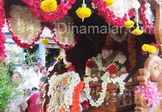 ஸ்ரீபெரும்புதுார்: சீரடியிலிருந்து வந்த பல்லக்கில், ஸ்ரீபெரும்புதுாரில், சாய்பாபா நேற்று முன்தினம் வீதி உலா வந்தார். ஸ்ரீபெரும்புதுார் அடுத்த, பாடிச்சேரியில், சாய்பாபாவுக்கு கோவில் கட்டும் பணி நடந்து வருகிறது. இந்நிலையில், சாய்பாபாவிற்காக, பல்லக்கு வடிவமைக்கப்பட்டது. இந்த, புதிய பல்லக்கு, சீரடிக்கு கொண்டு செல்லப்பட்டு, அங்கு, சாய்பாபா வீதி உலா நடைபெற்றது. அதனைத் தொடர்ந்து, சீரடியில் வீதி உலா வந்த பல்லக்கு, ஸ்ரீபெரும்புதுார் கொண்டு வரப்பட்டது. இந்த பல்லக்கில், சாய்பாபா நேற்று முன்தினம் மாலை, திருவீதி உலா நடந்தது. ஸ்ரீபெரும்புதுார் பேருந்து நிலையம் அருகில் இருந்து புறப்பட்டு, காந்தி சாலை, செட்டி தெரு, திருமங்கையாழ்வார் தெரு என, முக்கிய வீதிகளில் சாய்பாப வீதி வந்தார். ஏராளமான பக்தர்கள் கோலாட்டம், பக்தி பஜனைகள் உடன், ஆடி பாடி வீதியில் வந்தனர்.