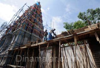 கோவை : கோனியம்மன் கோவில், ராஜகோபுரத் திருப்பணிகள் நிறைவடைந்துள்ள நிலையில், கோவில் கும்பாபிஷேக விழா, ஜூலை 11ல் நடக்கிறது. இதற்கான ஏற்பாடுகள், முழு வீச்சில் நடந்து வருகின்றன. கோவையின் காவல் தெய்வமான’ கோனியம்மனுக்கு ராஜகோபுர திருப்பணிகள், ஏழு ஆண்டுகளாக நடந்து, தற்போது நிறைவடைந்துள்ளன; ஏழு நிலை ராஜகோபுரம் அமைக்கப்பட்டுள்ளது. ராஜகோபுரதிருப்பணிக்காக ஒரு கோடியே 50 லட்சம் ரூபாய் செலவு செய்யப்பட்டுள்ளது. ராஜகோபுரப் பணிகள் நிறைவடைந்த நிலையில், கோவில் கோபுரத்தின் மேற்குப்பகுதியில், நான்கு அங்காடிக்கடைகள் கட்டப்பட்டு வருகின்றன. இங்கு உப்பு மஞ்சள், மலர் மாலை, தேங்காய் தட்டு ஆகியவை, கோவில் சார்பில் ஏலம் விடப்பட்டு, அங்கு கடை நடத்த உரிமம் வழங்கப்படும்.கோவிலின் கிழக்கு பகுதியிலிருந்த மேல்நிலை தொட்டி, பழைய கட்டடம் இடித்து அப்புறப்படுத்தப்பட்டது. ஜூலை 11ல் குடமுழுக்கு விழா நடத்த முடிவு செய்யப்பட்டுள்ளது. இதற்காக கட்டட, கட்டுமானம், வர்ணம்பூசுதல் உள்ளிட்ட அனைத்துப்பணிகளும் நிறைவடைந்து, விழாவுக்கு தயார் நிலையில் உள்ளது.