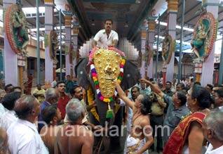 திருநள்ளார்: சனிஸ்வர பகவான் கோவில் யானைக்கு புதிதாக செய்யப்பட்ட நேற்றிப்பட்டம் பெறுத்தும் விழா நடந்தது. காரைக்கால் திருநள்ளாரில் உள்ள சனிஸ்வர பகவான் கோவிலில் உலக பிரசித்தி பெற்றது. இங்கு, நாட்டின் பல்வேறு பகுதியில் இருந்தும் பக்தர்கள் வருகின்றனர். இக்கோவிலு க்கு பிரமோற்சவ மற்றும் தேர் உள்ளிட்ட பல்வேறு நிகழ்ச்சிகள் நடைபெறுகிறது.கோவிலில் நடக்கும் விழாக்காலங்களில் சுவாமி புறப்பாடு முன்பு யானை ஊர்வலம் நடக்கும். கோவில் நிர்வாகம் சார்பில் கோவில் யானை பிரக்குருதிக்கு கேரளா மற்றும் பல்வேறு பகுதிகளில் உள்ள யானைகளுக்கு அமைக்கப்படும் நேற்றி பதக்கம் புதிதாக செய்யப்பட்டு அழகிய தேற்றத்தில் ரூ 80 ஆயிரம் மதிப்பில் 15 கிலோக்கொண்ட செம்புகலந்த தங்க பதக்கம் செய்யப்பட்டுள்ளது. புதிதாக செய்யப்பட்ட நேற்றிப்பட்டத்திற்கு நேற்று சிறப்பு பூஜைகள் செய்யப்பட்டு.பின் யானை பிரக்கருதினுக்கு நேற்றிப் பட்டத்தை அமைக்கும் விழா நடந்தது. திருநள்ளார் கோவிலில் உள்ள முருகன், விநாயகர், சிவன், மற்றும் சனிஸ்வரன் பகவான் உள்ளிட்ட சுவாமிளை யானை பிரக்ககருதின் வழிப்பட்டது. இந்நிகழ்ச்சியில் கோவில் நிர்வாக அதிகாரி ராஜராஜன் வீராசாமி மற்றும் பலர் கலந்து கொண்டனர்.
