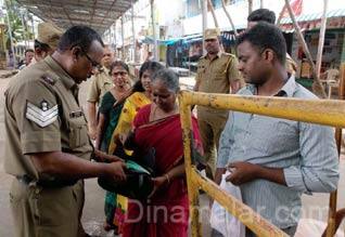 காரைக்கால்: திருநள்ளார் சனிஸ்வன் பகவான் கோவில் ஆப்ரேஷன் ஆம்லா என்ற பாதுகாப்பு ஒத்திகையில் கோவிலுக்கு வரும் பக்தர்களை போலீ சார் தீவிர சோதனையில் ஈடுப்பட்டனர். காரைக்கால் மாவட்டத்தில் கடலோர பாதுகாப்பு ஒத்திகையான ஆப்ரேஷன் ஆம்லா என்ற பாதுகாப்பு ஒத்திகை நிகழ்ச்சி நேற்று நடந்தது. ஒவ்வொரு ஆண்டும் நடைபெறும் பாதுகாப்பு ஒத்திகையில் காரைக்காலில் உள்ள கோவில்களில் போலீசார் தீவிர கண்காணிப்பில் ஈடுப்பட்டனர். திருநள்ளார் சனிஸ்வரன் பகவான், அம்மையார் கோவில், நித்யகல்யானப் பெருமாள்,பெரியப்பள்ளிவாசல், மாதா ஆலயம் உள்ளிட்ட கோவில் தலங்களில் வரும் பக்தர்களின் உள்ள உடைமைகளை போலீசார் தீவிர சோதனை செய்து அனுப்புகின்றனர்.மேலும் தி ருநள்ளார் கோவில் துப்பாக்கி ஏந்திய போலீசார் தீவிர கண்காணிப்பில் ஈடுப்பட்டு வருகின்றனர்.