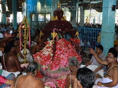 மயிலாடுதுறை: தஞ்சாவூர் மாவட்டம் கும்பகோணத்தை அடுத்த அய்யாவாடியில் ஸ்ரீ மகா பிரத்தியங்கிரா தேவி கோயில் உள்ளது. இக்கோயிலில் அமாவாசை தோறும் மிளகாய் வற்றல் கொண்டு நடத்தப்படும் நிகும்பலா யாகம் சிறப்பானது. இந்த யாகத்தில் கலந்துகொண்டு அம்பாளை தரிசித்தால் சத்ரு உபாதைகள் நீங்கும். ஆனி மாத அமாவாசையில் காலை ஸ்ரீ மகா பிரத்தியங்கிரா தேவிக்கு சிறப்புஅலங்காரம் செய்யப்பட்டது. தொடர்ந்து அம்பாளை கோயில் மண்டபத்தில் எழுந்தருள செய்து சிறப்பு பூஜைகள் நடத்தப்பட்டன. மதியம் 12:30 மணிக்கு தண்டபானி குருக்கள் யாகத்தில் மிளகாய் வற்றலை கொட்டி நிகும்பலா யாகத்தை நடத்தி வைத்தார். இதில் திரளான பக்தர்கள் கலந்துகொண்டு அம்பாளை தரிசித்தனர். யாகத்திற்கான ஏற்பாடுகளை சங்கர் குருக்கள் செய்திருந்தார். கும்பகோணத்திலிருந்து அய்யாவாடிக்கு சிறப்பு பஸ் இயக்கப்பட்டன. நாச்சியார்கோயில் போலீஸ் மற்றும் ஊர்காவல் படையினர் பாதுகாப்பு பணி யில் ஈடுபட்டிருந்தனர்.