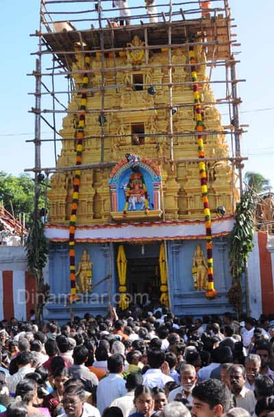 நேற்று காலை 4 மணிக்கு 4-ம் கால யாக சாலை பூஜை தொடங்கியது. 5.30-க்கு பரிவார யாக சாலை பூர்ணாகுதி, 6 முதல் 7 மணிக்குள் பரிவார மூர்த்திகளுக்கு கும்பாபிஷேகம் நடைபெற்றது. 7 மணிக்கு ஸ்பரிசாகுதி, நாடிசந்தனம், தத்வாஅர்ச்சனை ஆகியவை நடைபெற்றது. 8 மணிக்கு யாக சாலையிலிருந்து பூஜிக்கப்பட்ட கும்பங்கள் மேளதாளம் முழங்க ஊர்வலமாக எடுத்து வரப்பட்டது. தொடர்ந்து ராஜகோபுரம், மூஸ்தான விமானம் மற்றும் பரிவார கோபுரங்களுக்கு மகா கும்பாபிஷேகம் நடைபெற்றது. பின்னர் மூலஸ்தான மூர்த்திக்கு அஷ்டபந்தன மஹா கும்பாபிஷேகம் மற்றும் அலங்கார தீபாராதனைநடைபெற்றது.