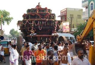 அதனால் நடராஜர் தேரோட்டம் காலை 11.30 மணிக்குள் நிலைக்கு வந்ததால் வெளியூர் பக்தர்கள் தேரோட்டம் பார்க்க முடியாமல் அதிருப்தி அடைந்தனர். இது போன்ற பிரச்னைகள் ஏற்பட்டு வந்ததால் இரு தேர்கள் பழுது நீக்கும் பணியை பச்சையப்பா ட்ரஸ்ட் ஒப்புக்கொண்டது. நடராஜர் சுவாமி தேர் பணி என்ன காரணமோ பணிகள் துவக்கப்படவில்லை. ஆனால் சிவகாமி அம்மன் தேர் 75 லட்ம் ரூபாய் மதிப்பில் புதுப்பிக்கப் பட்டுள்ளது. தேரில் சக்கரம் மற்றும் அச்சைத் தவிர மற்ற அனைத்து பாகங்களும் புதிய மரங்கள் மூலம் பணிகள் செய்து முடிக்கப்பட்டுள்ளது. இந்த பணியை புதுக்கோட்டையை சேர்ந்தவர் தேர் பழுது நீக்கம் பணியை செய்துள்ளனர். புதுப்பிக்கப்பட்ட அம்மன் தேர் வெள்ளோட்டம் நேற்று நடந் தது. இதனையொட்டி புதிய அம்மன் தேருக்கு உற்சவ ஆர்ச்சாரியார் ரத்தினசபாதி தீட்சிதர், கணபதி ஹோமம் உள்ளிட்ட சிறப்பு பூஜைகள் செய்யப் பட்டு, அம்மன் தேருக்கு புனித நீர் ஊற்றி அபிஷேகம் செய்து சிறப்பு பூஜை மற்றும் தீபாராதனைகள் நடந்தது. பின்னர் பொக்லைன் மூலம் அம்மன் தேர் இழுக்கப்பட்டு தேர் வெள்ளோட்டம் நடந்தது. இதனை பார்த்த நகர மக்கள் பரவசமடைந்தனர். புதிய தேர் நான்கு ரத வீதிகளில் உலா வந்து நிலைக்கு வந்தது.