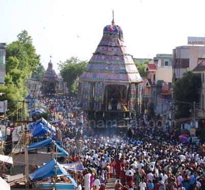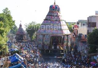 உற்சவத்தில் இன்று நடராஜர் சுவாமி திருத்தேரோட்டம் நடந்தது. இதனையொட்டி அதிகாலை சிவகாமசுந்தரி சமேத நடராஜர் சுவாமிக்கு சிறப்பு அபிஷேகம் அலங்காரம் நடைப்பெற்று சிறப்பு தீபாராதனைகள் நடந்தது. சுவாமி சித்சபை ரதயாத்திராதானம் நிகழ்ச்சியைதொடர்ந்து தேவாரம் திருவாசகம் பாட, மேளதாளங்கள், வானவேடிக்கையுடன் சுவாமி புறப்பாடு செய்து காலை 6 மணிக்கு தேரில் எழுந்தருளி பக்தர்களுக்கு காட்சியருளினார். தேரில் சுவாமிக்கு சிறப்பு பூஜைகள், மகா தீபாராதனைகள் நடக்கப் பெற்று, உற்சவ ஆர்ச்சாரியார் ரத்தினசபாபதி தீட்சிதர் காலை 8.15 மணிக்கு வடம் பிடித்து இழுத்து துவக்கி வைத்தார். இதனைதொடர்ந்து பக்தர்கள் தேர் வடம் பிடித்து இழுத்தனர். முதல் தேராக விநாயகர், முருகர் தேரை தொடர்ந்து நடராஜர் சுவாமி, சிவகமாசுந்தரி அம்மன் மற்றும் சண்டிகேஸ்வரர் தேர் சென்றது. நடராஜர் சுவாமி மற்றும் சிவகாமசுந்தரி அம்மனுக்கு வீதிகளில் மண்டகப்படிதாரர்கள் வீட்டின் முன்பு நின்று 4 கிராம் தங்க காசுகள் தட்சனை வைத்து சிறப்பு தீபாராதனைகளுடன் தேரோட்டம் நடந்தது. நான்கு வீதிகளில் 90 மண்டகப்படிதாரர்கள் தீபாராதனை அளித்தனர்.