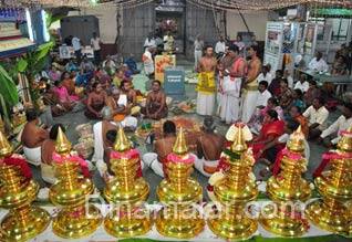 கோவை : கோவை, கோனியம்மன் கோவில் கும்பாபிசேக விழாவை முன்னிட்டு, நேற்று மங்கல இசையுடன் சிறப்பு பூஜைகள் துவங்கின. கோனியம்மன் கோவில் ராஜகோபுர திருப்பணி நிறைவடைந்த நிலையில், திருக்குட நன்னீராட்டு விழா ஜூலை 11 அன்று நடக்கிறது. நாதஸ்வர வித்வான் தருமபுரி ஜெயபாலனின் மங்கல இசையுடன் நேற்று மாலை விழா துவங்கியது. ராஜப்பா குருக்கள் தலைமையில் சிறப்பு பூஜைகள் நேற்று மாலை துவங்கின. கண்ணப்பன் ஓதுவார் குழுவினர், அகண்ட திருமுறை பாராயணம் செய்தனர். இரவு 7.00 மணிக்கு, புதிய ராஜகோபுர அமைப்புத்தலத்தில் சிறப்பு பூஜைகள் நடந்தன. இரவு 9.00 மணிக்கு திருநீறு, திருவமுது வழங்கும் நிகழ்ச்சி நடந்தது. இன்று சிறப்பு யாகவேள்வி, காலை 7.00 மணிக்கு, ஆனைமுகத்தோன் சிறப்பு வேள்வியும், நவகோள்கள், மலைமகள், அலைமகள், கலைமகளுக்கு சிறப்பு வேள்வியும் நடக்கின்றன. காலை 9.00 மணிக்கு ராஜகோபுரத்தில் வைக்கப்பட உள்ள தங்கக்கலசங்களை புனிதமாக்கும் நிகழ்ச்சி நடக்கிறது.காலை 10.00 மணிக்கு ராஜகோபுர கலசங்களை, கோவை நகர வீதிகளின் வழியாக திறந்தவெளி வாகனத்தில் பக்தர்கள் பார்வைக்காக கொண்டு செல்கின்றனர். பகல் 1.00 மணிக்கு ராஜகோபுரத்தின் மேற்பகுதியில் கோபுரக்கலசங்களை பொருத்தி, சிறப்பு பூஜை செய்து கலசங்களின் கண் திறக்கும் நிகழ்ச்சி நடக்கிறது. நாளை இரவு 7.00 மணிக்கு முதற்கால வேள்வி துவங்குகிறது.
