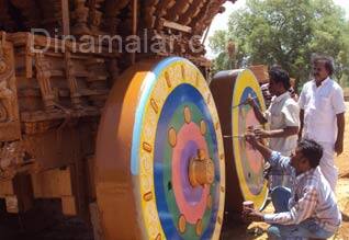ராஜபாளையம்: ஆனிப்பெருந்திருவிழாவை முன்னிட்டு, ராஜபாளையம் பெத்தவநல்லுõர் மாயூரநாதசுவாமி கோயிலில் ஜூலை 10ல் தேரோட்டம் நடக்க உள்ளது. பெரியதேரில் மாயூரநாத சுவாமியும், சிறிய தேரில் அஞ்சல்நாயகி அம்மனும் பவனி வருவர். கம்ப்ரஸர் மூலம் தேரை சுத்தம் செய்து, சக்கரங்களுக்கு பெயின்ட் அடிக்கும் பணி நேற்று நடந்தது. இந்த பணிக்கான ஏற்பாடுகளை, தர்மாபுரம் மாப்பிள்ளை விநாயகர் நற்பணி மன்றத்தினர் செய்து இருந்தனர். இதன் தலைவர் ராமராஜூ, இந்த பணிகளை நேற்று காலை துவக்கி வைத்தார்.