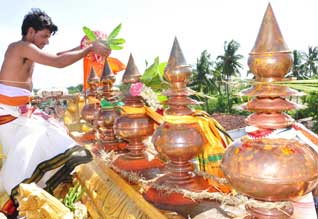 நேற்று (4ம் தேதி) காலை 6:00மணிக்கு விஸ்வரூபம், யாகசாலை,ஹோமங்கள், 9:00 மணிக்கு யாத்ராதானம் கடம்புறப்பாடாகி 9:15 மணிக்குமூலவர் விமானங்களுக்கு மகா சம்ரோஷணம் நடந்தது.