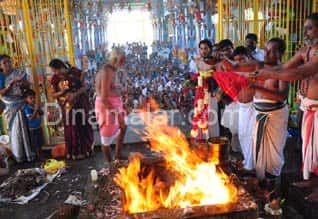 விழுப்புரம்: விழுப்புரம் அடுத்த பூவரசன்குப்பம் லட்சுமி நரசிம்மர் கோவில் சுவாதியை முன்னிட்டு சுதர்சன தன்வந்திரி ஹோமம் நடந்து. பூ வரசன்குப்பம் லட்சுமி நரசிம்மர் கோவிலில் சுவாதியை முன்னிட்டு காலை 6 மணிக்கு மூலவர் நரசிம்மருக்கு திருமஞ்சனம் நடந்தது. தங்க கவசம் அணிவித்து சிறப்பு அலங்காரம் செய்து தீபாராதனை நடந்தது. 9 மணிக்கு சுதர்சன தன்வந்திரி ஹோமம் துவங்கியது. மதியம் 12.30 மணிக்கு வசுந்தாரா ஹோமம் முடிந்து கடம் புறப்பட்டு மூலவருக்கு தீர்த்தகுடம் மூலம் அபிஷேகம் நடந்தது. ஹோமத்தை காண பக்தர்கள் குவிந்தனர். நிகழ்ச்சி ஏற்பாடுகளை செயல் அலுவலர் முத்து லட்சுமி, தலைமை குருக்கள் பாத்தசாரதி செய்திருந்தனர்.