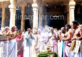 திருச்சி: ஸ்ரீரங்கம் ரங்கநாதர் கோவிலில், புனரமைப்பு பணிகள் மேற்கொள்வதையொட்டி, நேற்று, 14 கோபுரங்களுக்கான பாலாலயம் அமைத்து பூஜை செய்யப்பட்டது. திருச்சி ஸ்ரீரங்கம் ரங்கநாதர் கோவிலில், பனிரெண்டு ஆண்டுகளுக்கு பின், கும்பாபிஷேகம் நடைபெற உள்ளது. தமிழக அரசு, 10.45 கோடி நிதி ஒதுக்கீடு செய்து, கோவிலில் பல்வேறு திருப்பணிகள் நடத்த உத்தரவிட்டது. கடந்த மாதம், 5ம் தேதி, கோவில் திருப்பணிகளை, இந்து சமய அறநிலையத்துறை அமைச்சர் செந்தூர் பாண்டியன் துவக்கி வைத்தார். கோவிலில், ஏழு பிரகாரங்களிலுள்ள, 21 கோபுரங்களில் திருப்பணி செய்ய முடிவு செய்து, முதற்கட்டமாக ஏழு கோபுரங்களுக்கு ஏற்கனவே பாலாலயம் நடத்தப்பட்டது. நேற்று காலை, 6 மணிக்கு, ராஜகோபுரம், ரங்கா ரங்கா கோபுரம், பரமபத வாசல், உடையவர் சன்னிதி, சக்கரத்தாழ்வார் சன்னிதி, தாயார் சன்னிதி, ஆச்சார்யா சன்னிதி உள்ளிட்ட, 14 கோபுரங்களில் திருப்பணி மேற்கொள் பாலாலயம் அமைத்து பூஜை செய்யப்பட்டது. ஸ்ரீரங்கம் கோவில் உதவி கமிஷனர் ஜெயராமன் தலைமை வகித்தார். கோவில் திருப்பணியில் ஸ்தபதிகள், ஓவியர், பெயிண்டர், சாரம் கட்டும் பணியாளர், கட்டுமான பணியாளர்கள் திருப்பணியில் ஈடுபட்டுள்ளனர். “21 கோபுர பணிகள் முடிந்த பின், கருவறை கோபுரத்திற்கான, திருப்பணிகள் துவங்கும்,” என உதவி கமிஷனர் ஜெயராமன் தெரிவித்தார்.